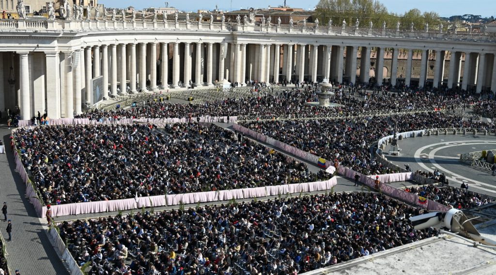 “Let us raise our prayer to the Prince of Peace, that he may support the peoples wounded by war and open concrete paths of reconciliation and peace,” was his other appeal during the Angelus, in a St. Peter’s Square packed with faithful, whom Leo greeted with an extended tour in the Popemobile at the end of the Mass.