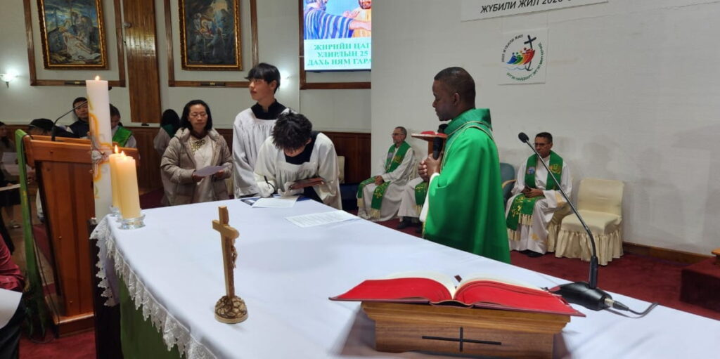 It is beautiful to see a young church like that of Mongolia, where during the Sunday celebration in the cathedral, presided over by parish priest Father Dieudonné Mukadi, about twenty catechists were sent forth to care for the formation of 70 children, adolescents, young people, and adults preparing to receive the sacraments of Christian initiation. Each catechist sealed his or her commitment of faith and service on the altar with a signature.